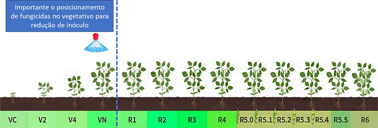 Fungicidas do grupo das estrobilurinas e carboxamidas são altamente dependentes de posicionamento preventivo devido à menor mobilidade nos tecidos e maior ação nas fases de pré-penetração do fungo.
